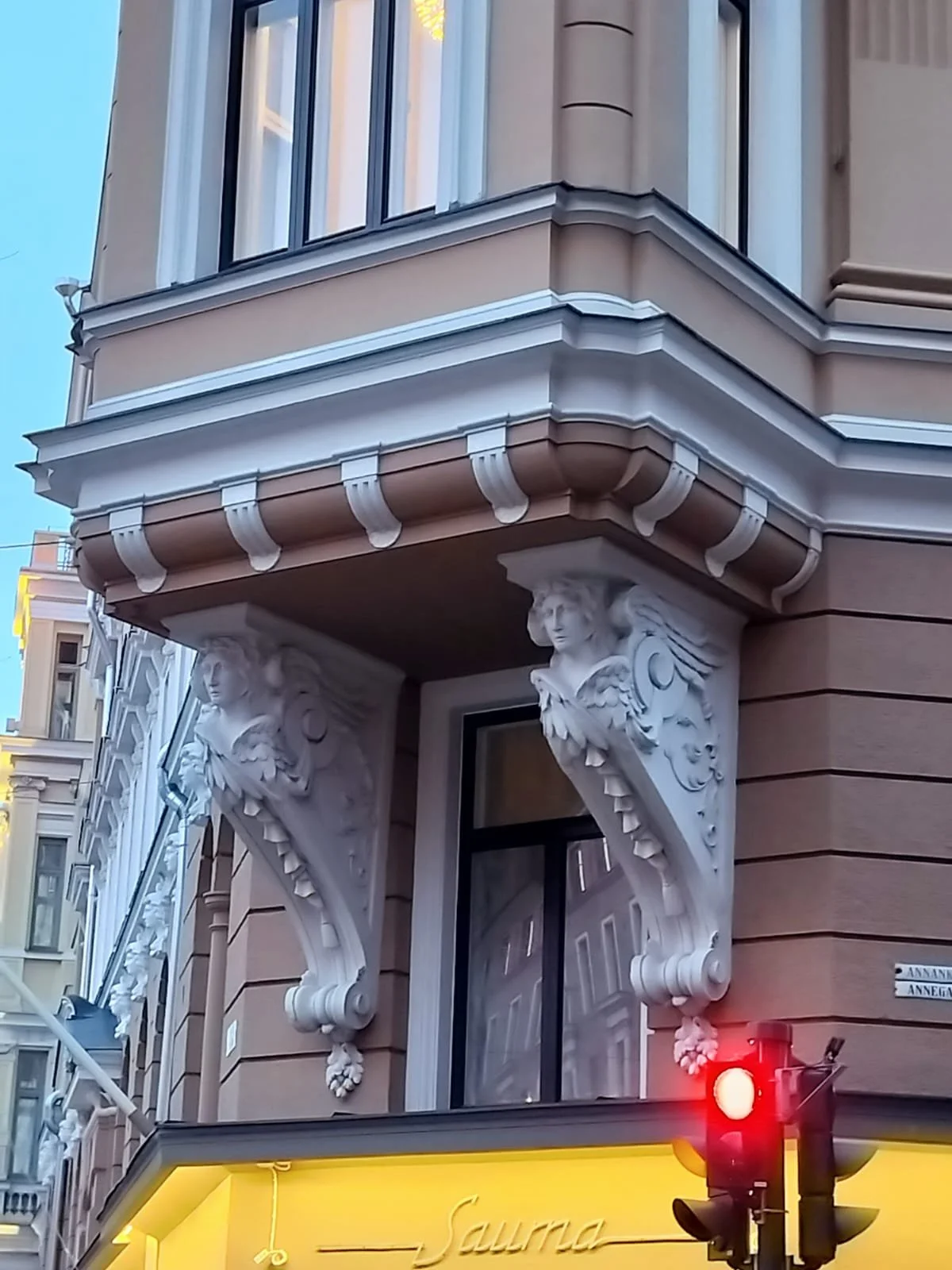 Do you know the Leo DiCaprio movie Don’t look up? Now, I haven't actually seen it, but the name is brilliant because sometimes you definitely shouldn't look up, lest you spot a creepy carved face watching over you on Fredrikinkatu.