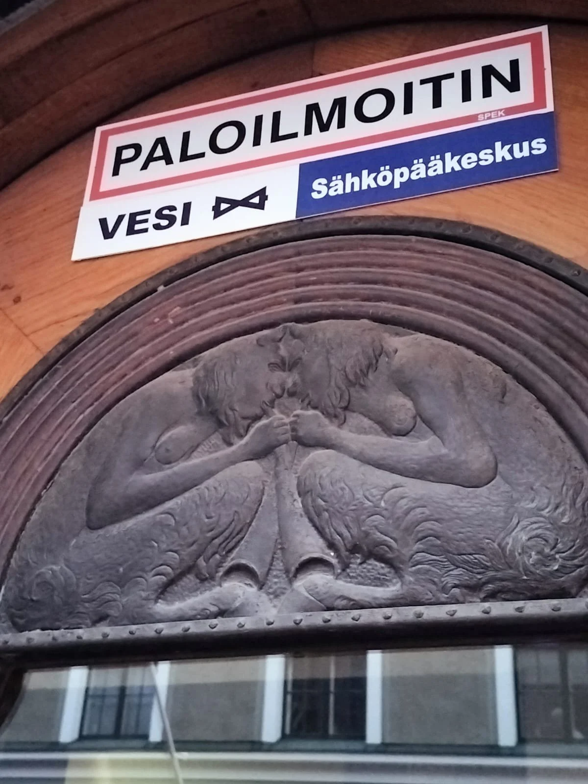 At first glance, this doorway relief on Uudenmaankatu seems to depict two faun musicians having a very intense pipe-off.