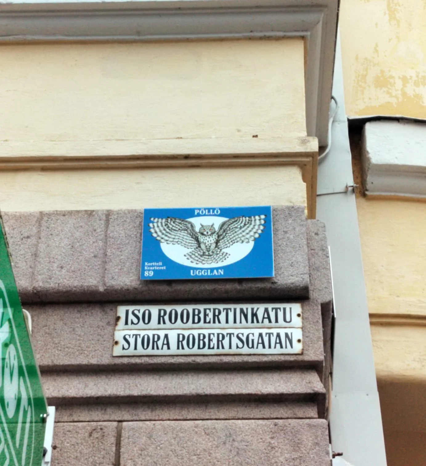 Remember those animal signs from the last installment? Well, they stretch over the area of Punavuori as well. This one in the corner of Fredrikinkatu and Iso Roobertinkatu is definitely one of them and not, as one might fear, an insult aimed at anyone who happens to look up at it. (For our international audience: this is funny in Finnish.)